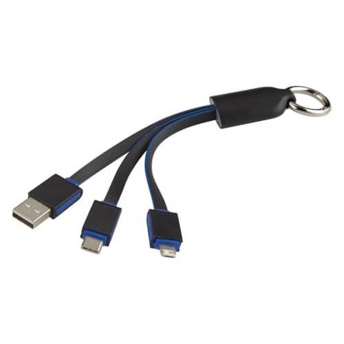 Compatible With Apple® 8-Pin, Micro USB And Type-C Devices. Simply Plug The Cable Into A Powered USB Port And Then Into Your Device Or Smartphone. Charge Multiple Devices At Once When Using An Ample Power Source. Round Carabiner Attachment. Apple is a trademark of Apple Inc., registered in the U.S. and other countries.