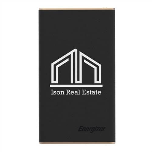 Power your advertising campaign to go full steam ahead with this Energizer® 10000 MaH Leatherette Power Bank! The lithium ion grade-A non-recycled battery features LED indicator lights when charging, dual USB output ports for charging two devices at once and leather coating that protects against fingerprints. PowerSafe management guarantees short circuit and over-charging protection on the power bank and devices. It requires the user's phone's charging cord to charge and is able to charge most phones, mp3 players and more! Output: 5 Volts/2 Amp.