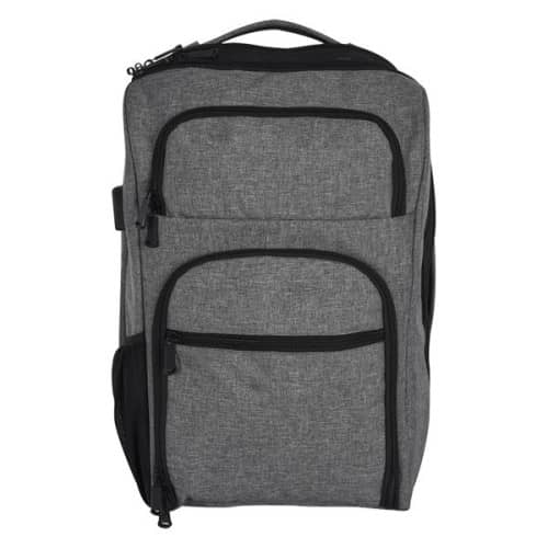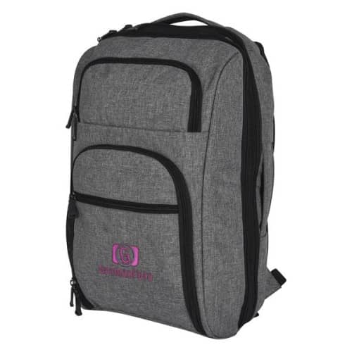 Heathered RFID laptop backpack and briefcase with several pockets and added features for comfort.