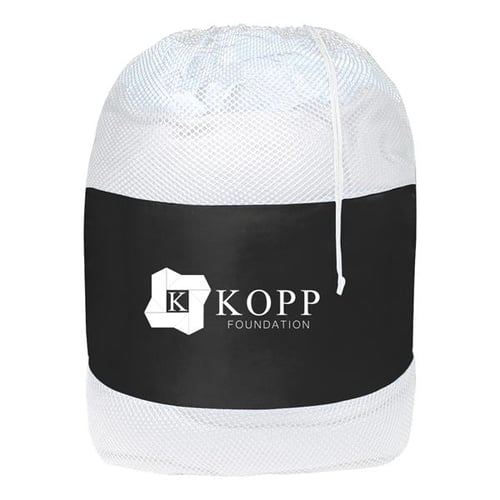 Laundry bag made of 210 Denier Polyester with soft nylon mesh body.